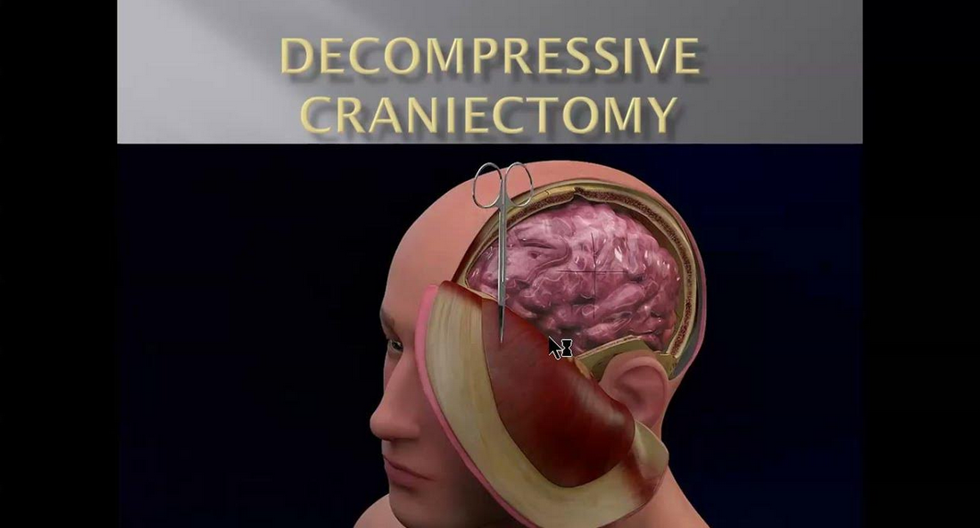 A decompressive craniectomy is a life-saving neurosurgical procedure in which a portion of the skull is temporarily removed to relieve excessive intracranial pressure (ICP) caused by brain swelling.