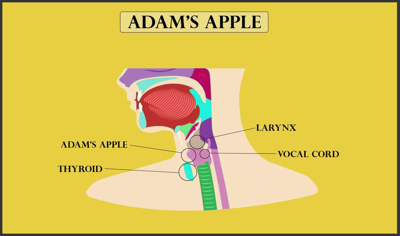 The Adam's Apple is the visible bump at the front of the neck formed by the thyroid cartilage that protects the vocal cords. This prominence is typically more noticeable in men, due to the increased size of the cartilage during puberty under the influence of testosterone. While it serves a functional role in protecting the airway, many individuals desire to reduce its size for cosmetic reasons or as part of gender affirmation surgery.
