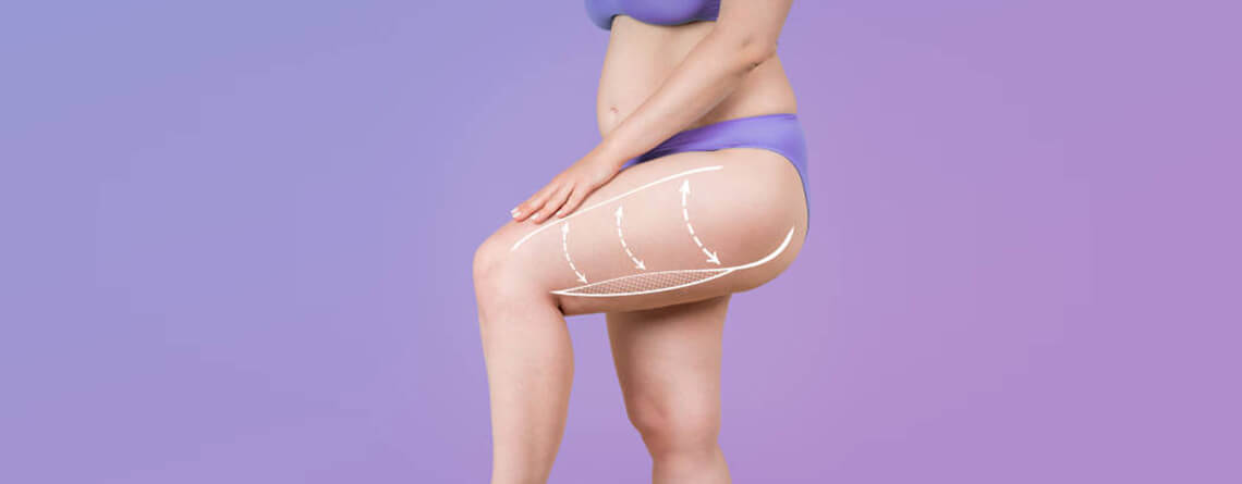 After large weight loss (e.g. following bariatric surgery or diet/fitness regimens), the skin may not retract fully, leaving redundant skin folds on the inner or outer thighs. -