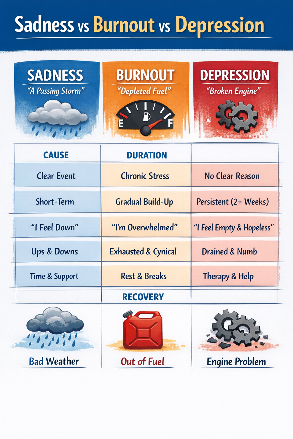 🧠 Sadness vs Burnout vs Depression