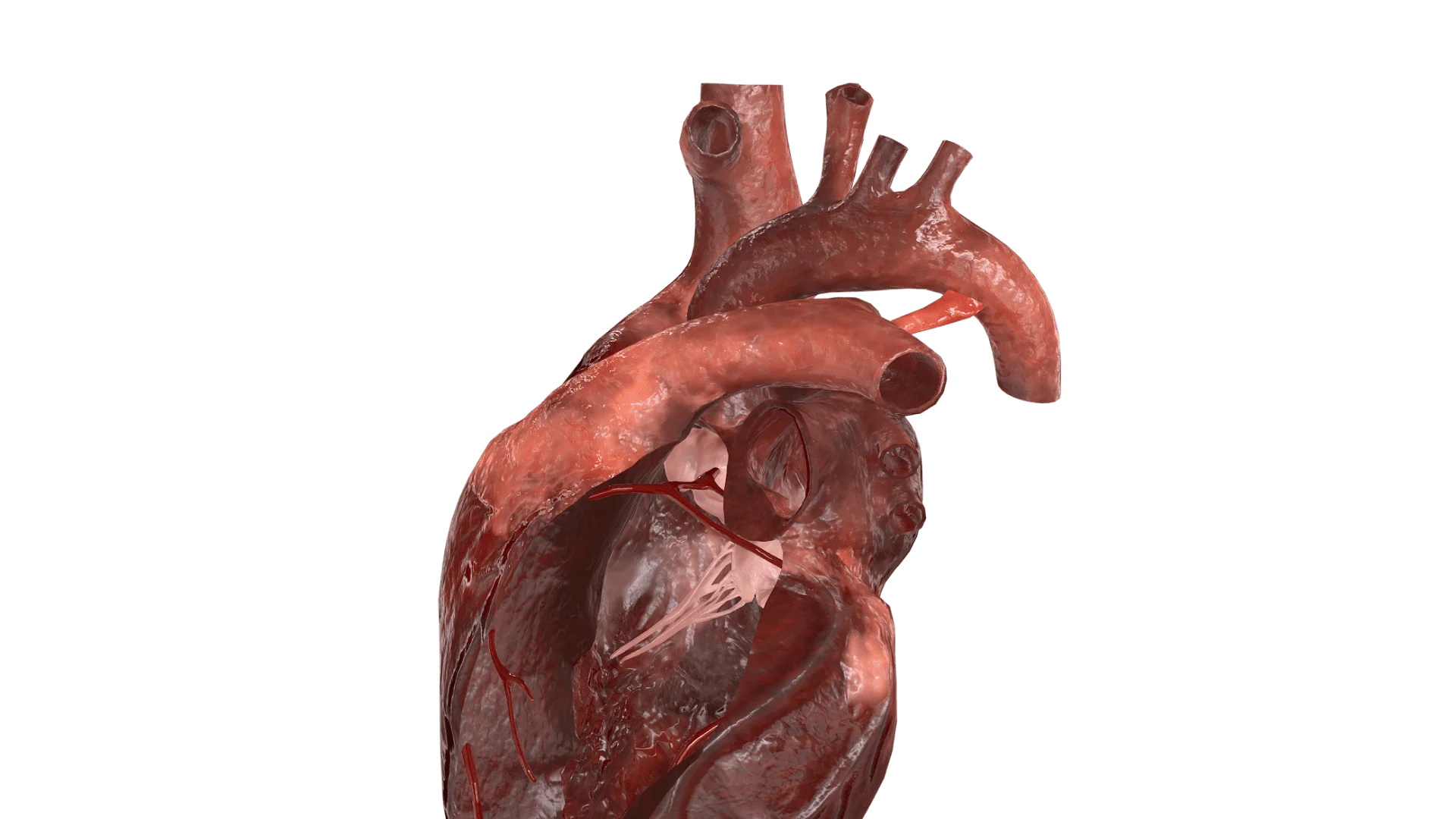 four-chamber organ with distinct atria, ventricles, and valves. Part of this