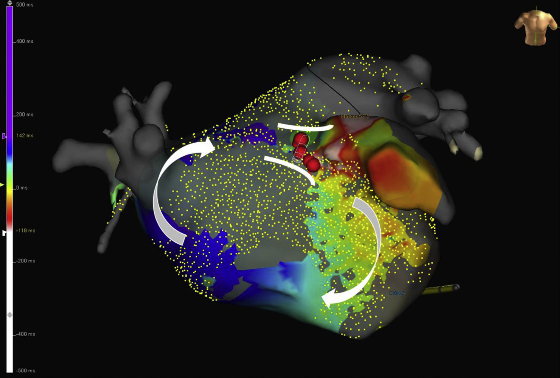 electrical activation during an arrhythmia.