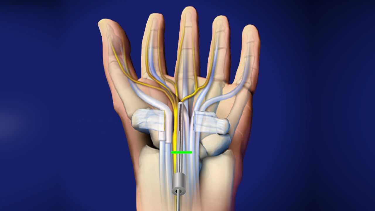 the hand to directly access and cut the transverse carpal ligament. It provides