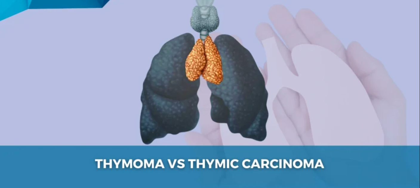 Thymoma and thymic carcinoma are rare cancers originating in the thymus gland, located behind the breastbone. Thymomas are typically slow-growing and less likely to spread, whereas thymic carcinomas are more aggressive, grow rapidly, and have a higher tendency to metastasize.
