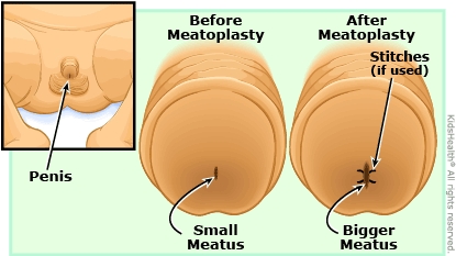 Meatoplasty: For more significant stenosis, meatoplasty is the definitive treatment. During this procedure, the narrowed portion of the meatus is excised, and the opening is widened to allow for normal urine flow. The procedure may involve removing scar tissue and using local tissue to reconstruct the meatal opening.
